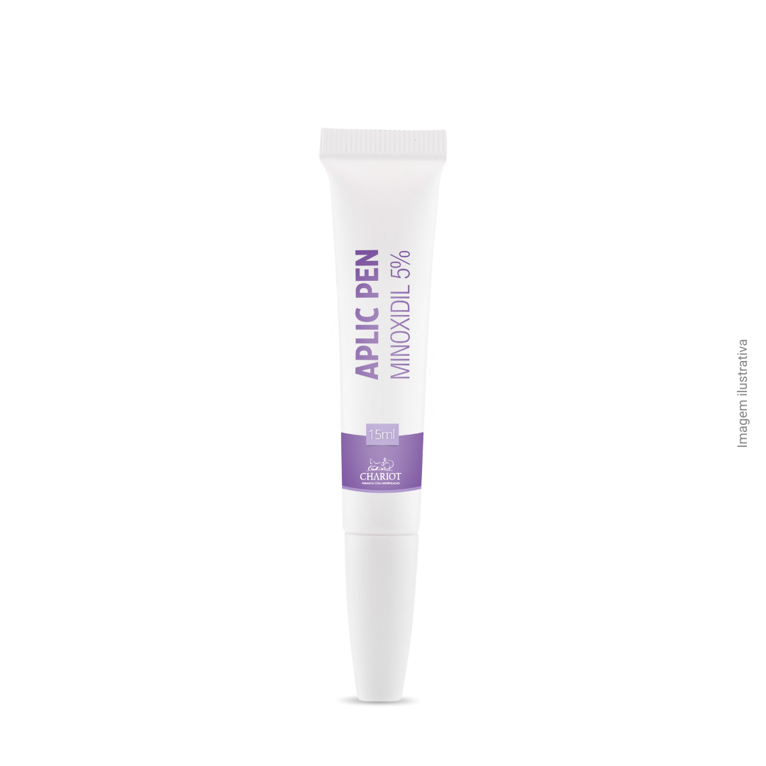 Minoxidil 5% — concentração conforme prescrição; veículo apropriado para caneta aplicadora (uso tópico).