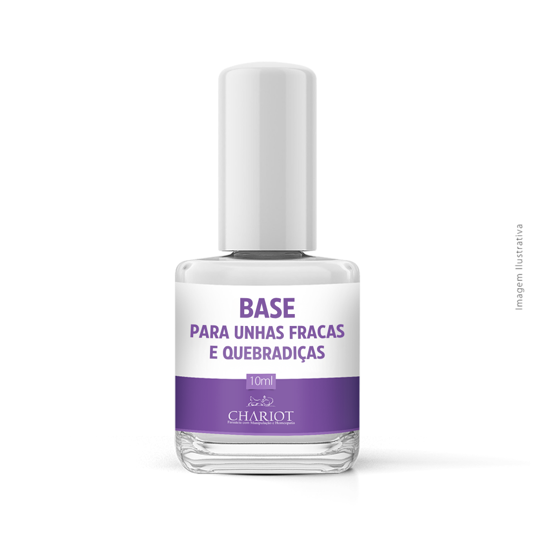 A Base Fortalecedora para Unhas é formulada com Queratina, Carbonato de Cálcio e Vitamina E, indicada para auxiliar no tratamento de unhas fracas e quebradiças. Atua penetrando e selando as três camadas das unhas (interna, intermediária e externa), contribuindo para reparação e resistência.