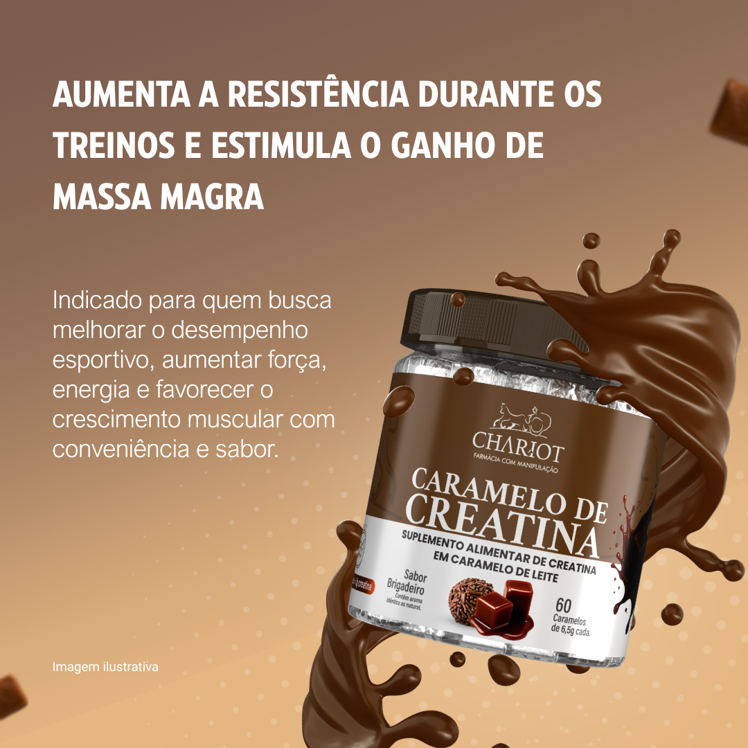 O Caramelo de Creatina da Chariot é um suplemento alimentar de creatina em caramelo de leite inovador que combina o sabor irresistível do brigadeiro com a performance da creatina. Desenvolvido em formato de caramelo de leite, é uma forma prática e deliciosa de otimizar o desempenho físico e potencializar os resultados nos treinos.